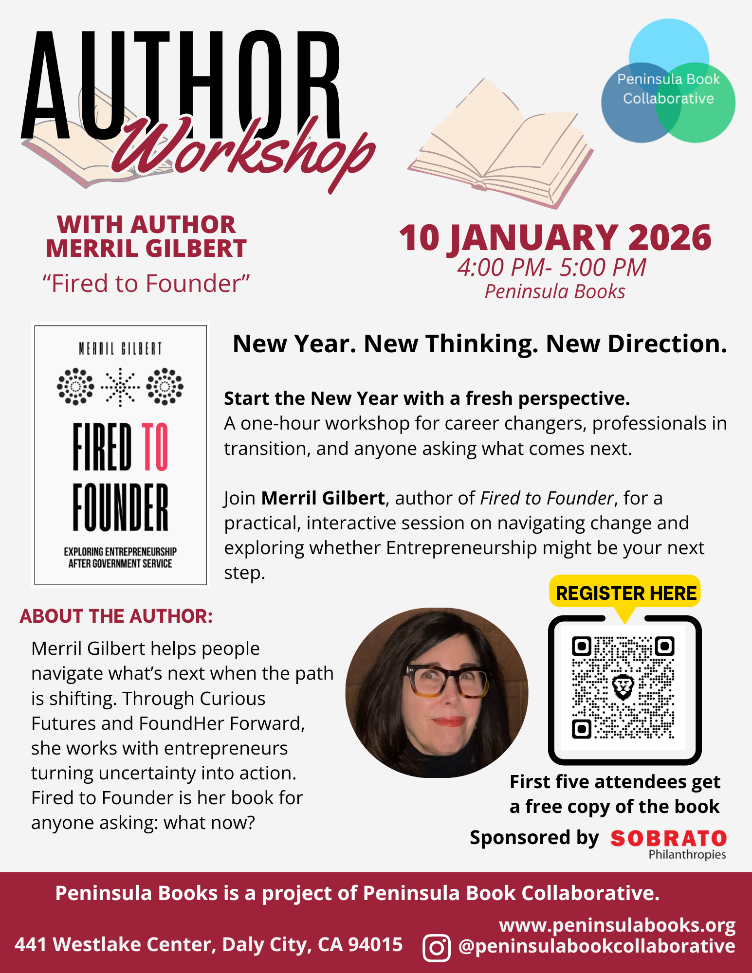 Join Merril Gilbert, author of Fired to Founder, for a practical, interactive session on navigating change and exploring whether Entrepreneurship might be your next step.
