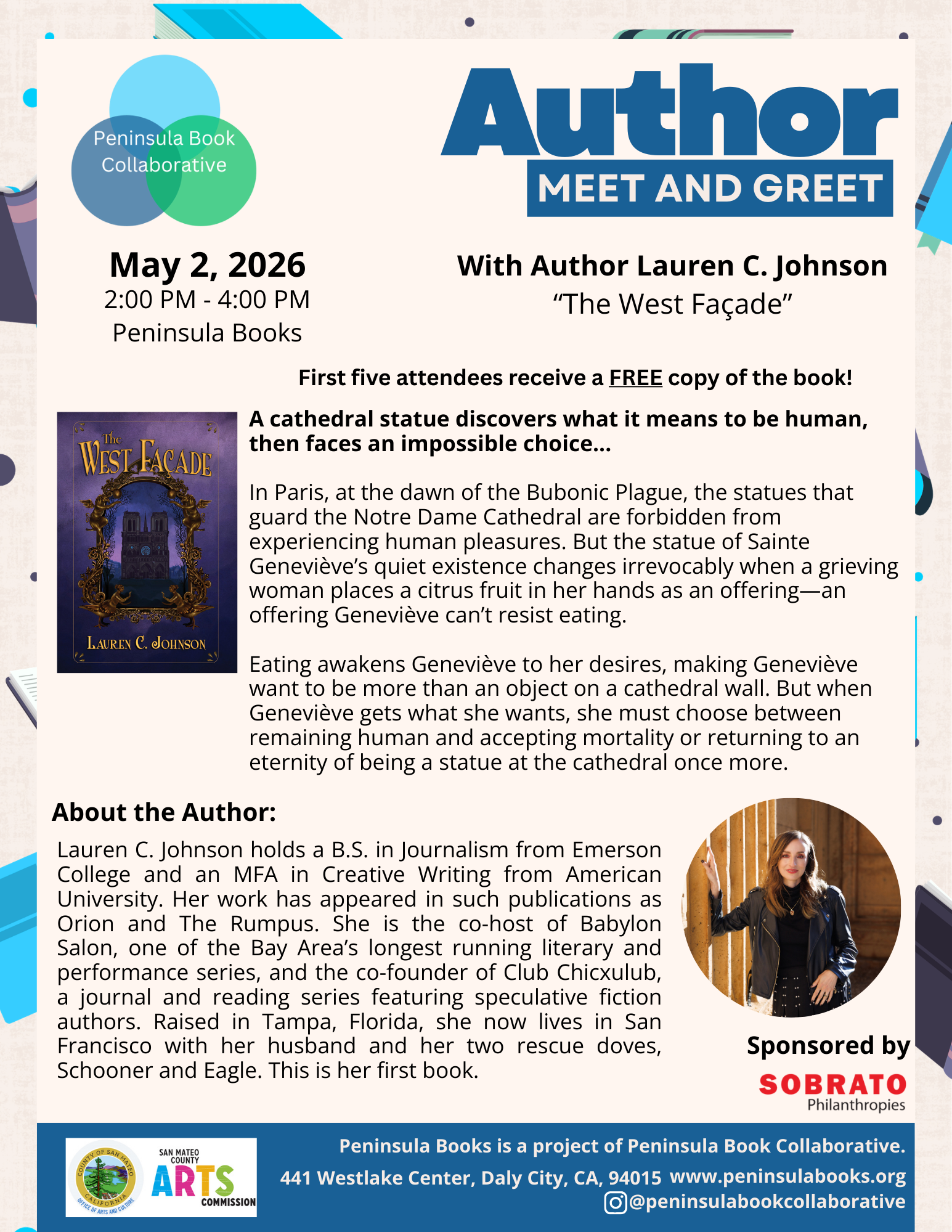 Come meet the author of West Facade, Lauren C. Johnson First 5 attendees will receive a free copy of The West Facade About the Book A cathedral statue discovers what it means to be human, then faces an impossible choice... In Paris, at the dawn of the Bubonic Plague, the statues that guard the Notre […]