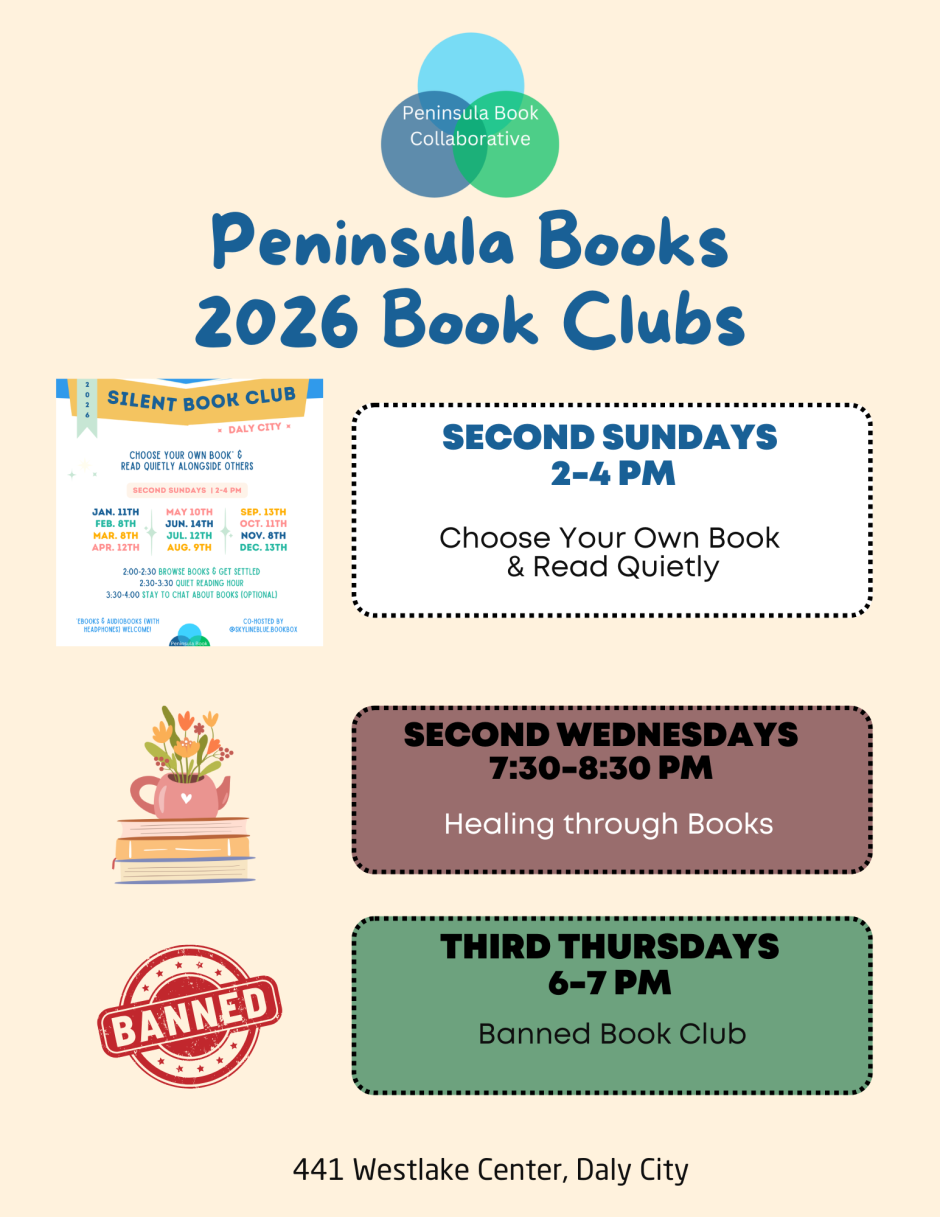 Join us for one or all three book clubs monthly, each unique, hosted by a different person, and yet all are creating community through books. Hope to see you there. Check our events page for specific dates/times.